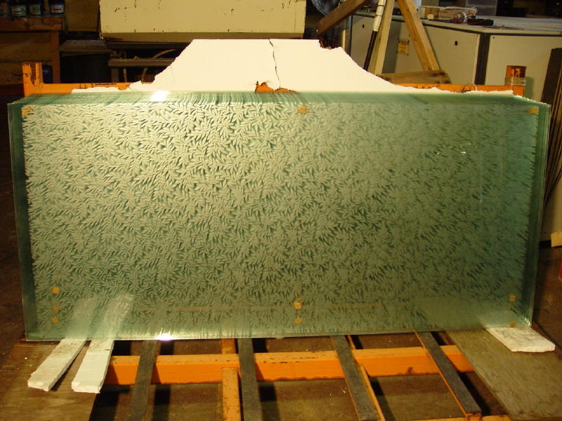 36in x 84in 1/4in thick glassGlass etching is produced by acid etching one side of float glass.